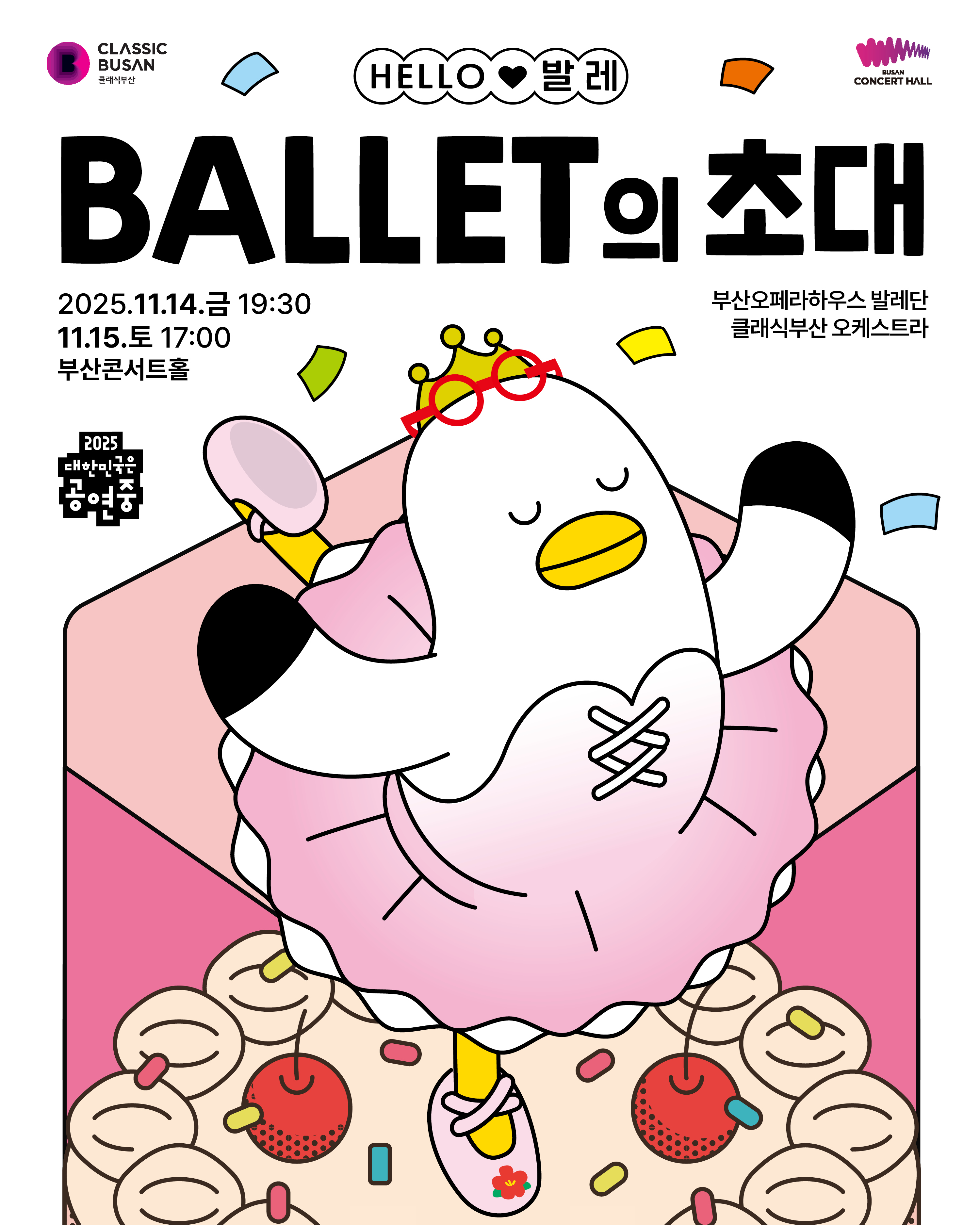 부산오페라하우스발레단과 클래식부산오케스트라가 함께하는 헬로 시리즈 발레 갈라. ‘호두까기 인형’, ‘백조의 호수’, ‘지젤’ 등 주요 장면과 ‘샤이닝 웨이브’ 갈라를 콘서트 발레 형식으로, 해설과 라이브 오케스트라로 온 가족이 즐길 수 있다.