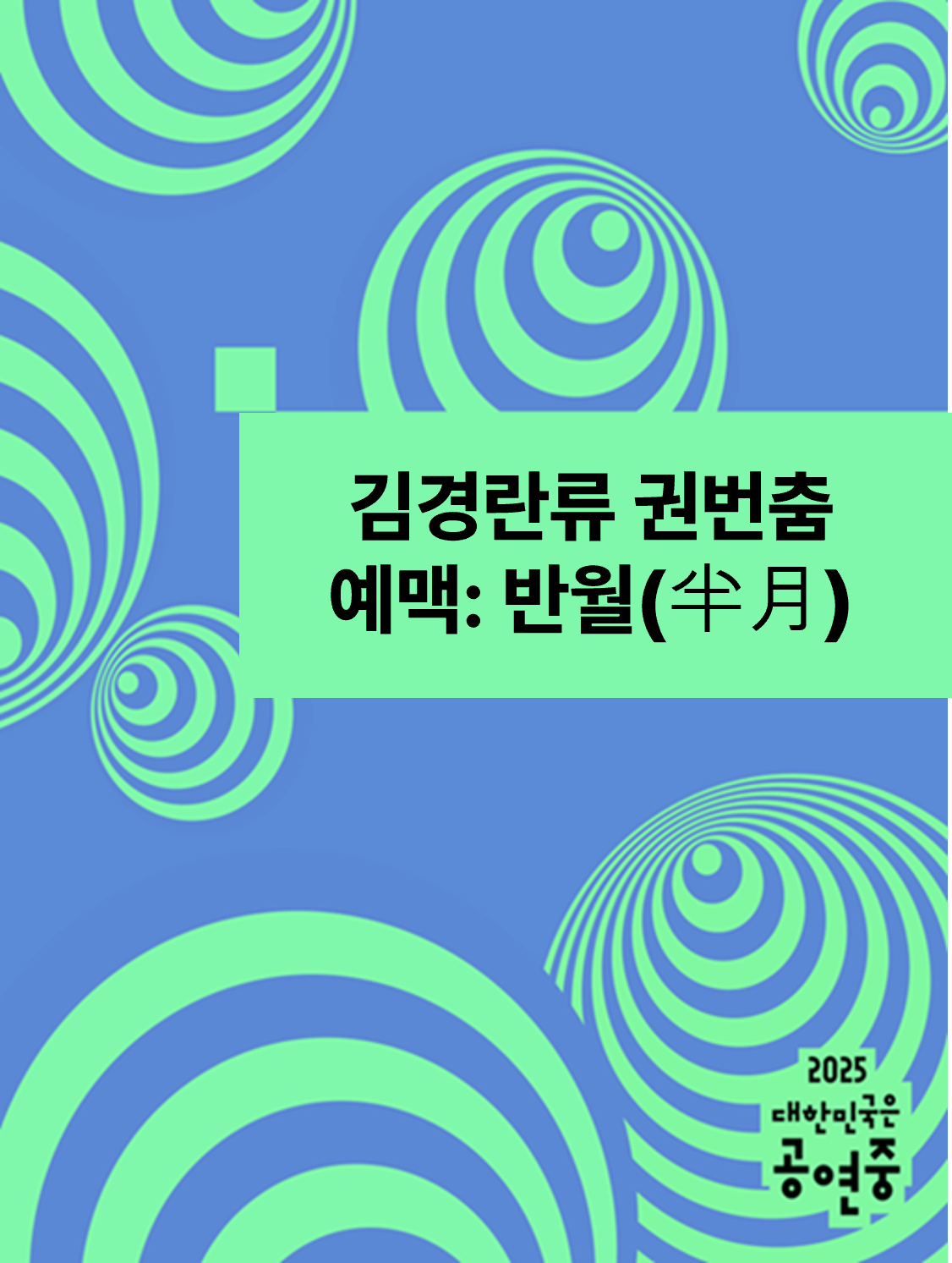 〈김경란류 권번춤 예맥: 반월〉은 교방굿거리춤의 맥을 잇는 김경란 선생과 서울교방 무용수들이 전통춤의 역사성과 창조성을 되살리며 현재화와 대중화를 모색하는 무대다. ‘반월’은 김경란의 춤 생애와 공동체의식을 상징하며, 전통과 현대가 융합된 총체예술의 미학을 선사한다.