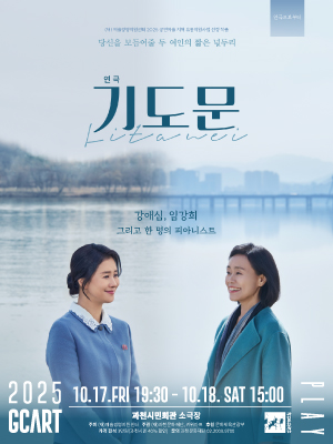 연극 〈기도문〉은 참혹한 참사로 자녀를 잃은 남과 북, 두 어머니의 이야기를 강렬하게 풀어낸 2인극이다. 넷플릭스 〈오징어게임2·3〉의 강애심과 연극 〈02:22〉, 〈대학살의 신〉의 임강희가 출연해 각각 남과 북의 여인을 연기한다. 여기에 블라인드 오디션으로 발탁된 여성 피아니스트가 함께해, 섬세한 연주와 두 배우의 밀도 높은 연기 호흡이 어우러진 감동의 무대를 완성한다.