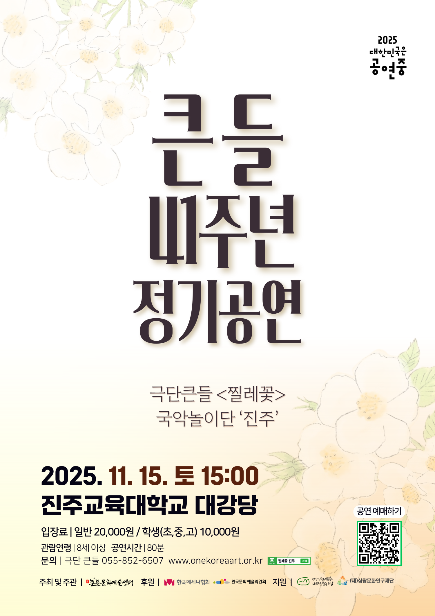 Celebrating its 41st anniversary, Geukdan Kkeundul presents “Wild Rose,” a madang-geuk (traditional Korean open-air folk theater) that humorously unfolds the wisdom and philosophy of the Donguibogam (Compendium of Korean Medicine). The story follows protagonist Jeong Gwirae, the five vital organs (heart, liver, lungs, spleen, and kidneys), and five children as they embark on a journey to discover the truth that “a healthy mind leads to a happy body.” With vibrant energy, the troupe delivers a warm and spirited reminder of the balance between body and mind for modern audiences.
