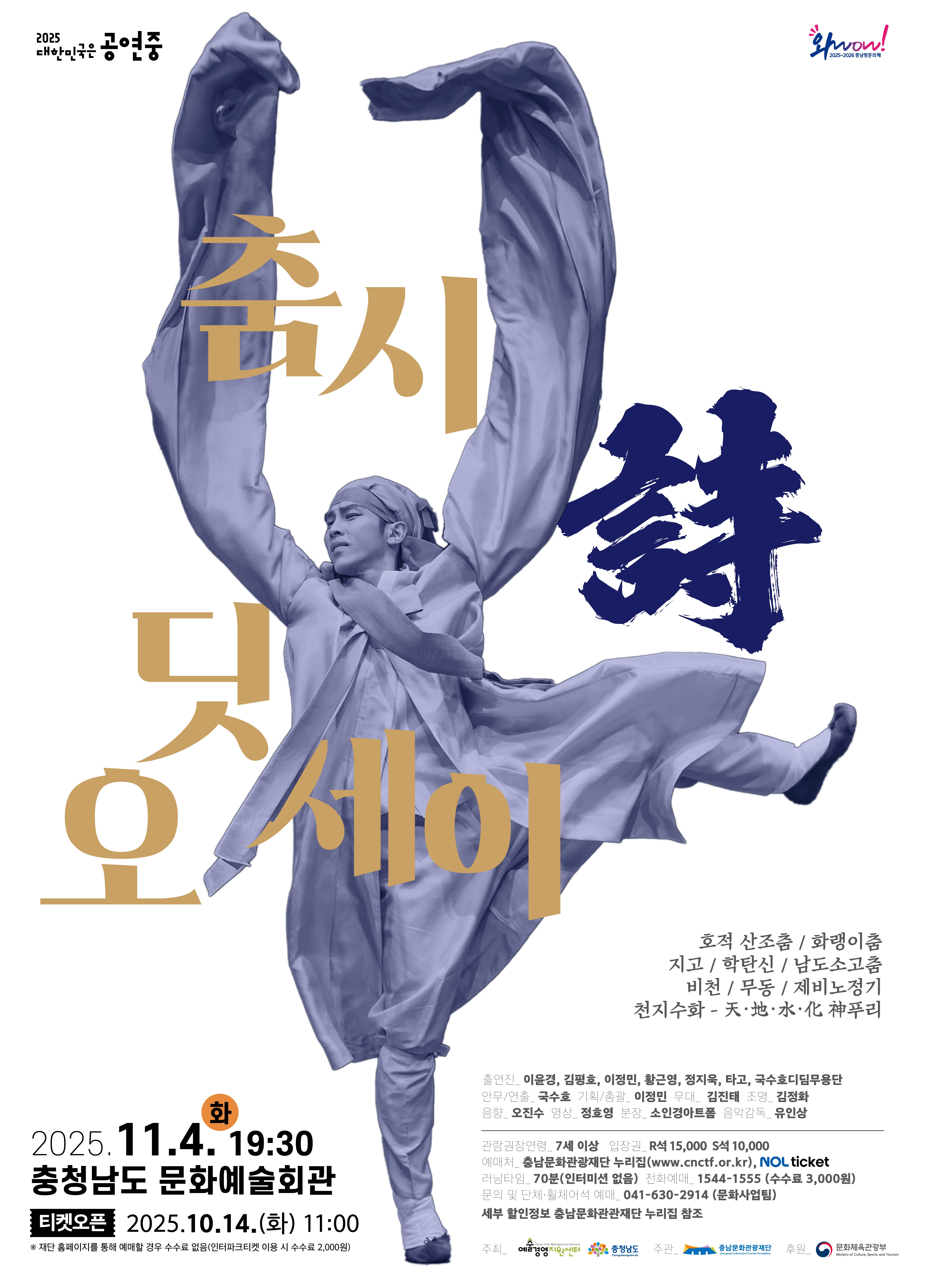 “Dance Poetry Odyssey” is a six-movement work that reimagines traditional folk performance and Korean mythology in a contemporary language. Spanning conflict and reconciliation, life and death, it unfolds with a sweeping narrative and poetic movement. Dance, poetry, music, and visual design converge to expand the artistic possibilities of Korean dance.