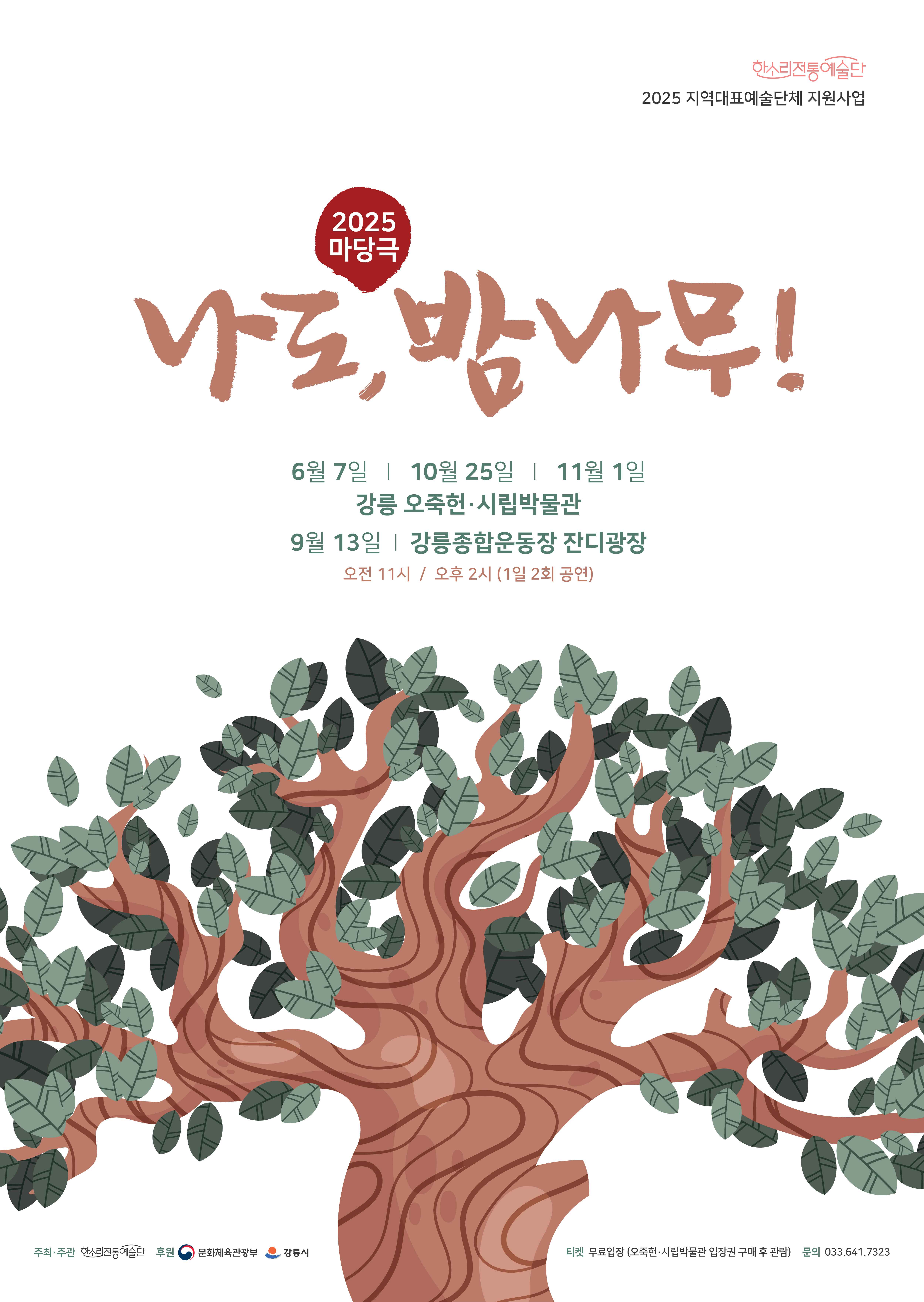 This original performance is inspired by the folktales of Yulgok Yi I, a historic Confucian scholar from Gangneung, a coastal city in Korea. The story, centered around the symbol of a chestnut tree, is told through a blend of traditional Korean music (gugak) and madang-geuk, a traditional form of outdoor folk theater where actors and audience closely interact. Combining these diverse elements of Korean traditional arts, the concert creates a lively, family-friendly experience that audiences of all ages can enjoy.