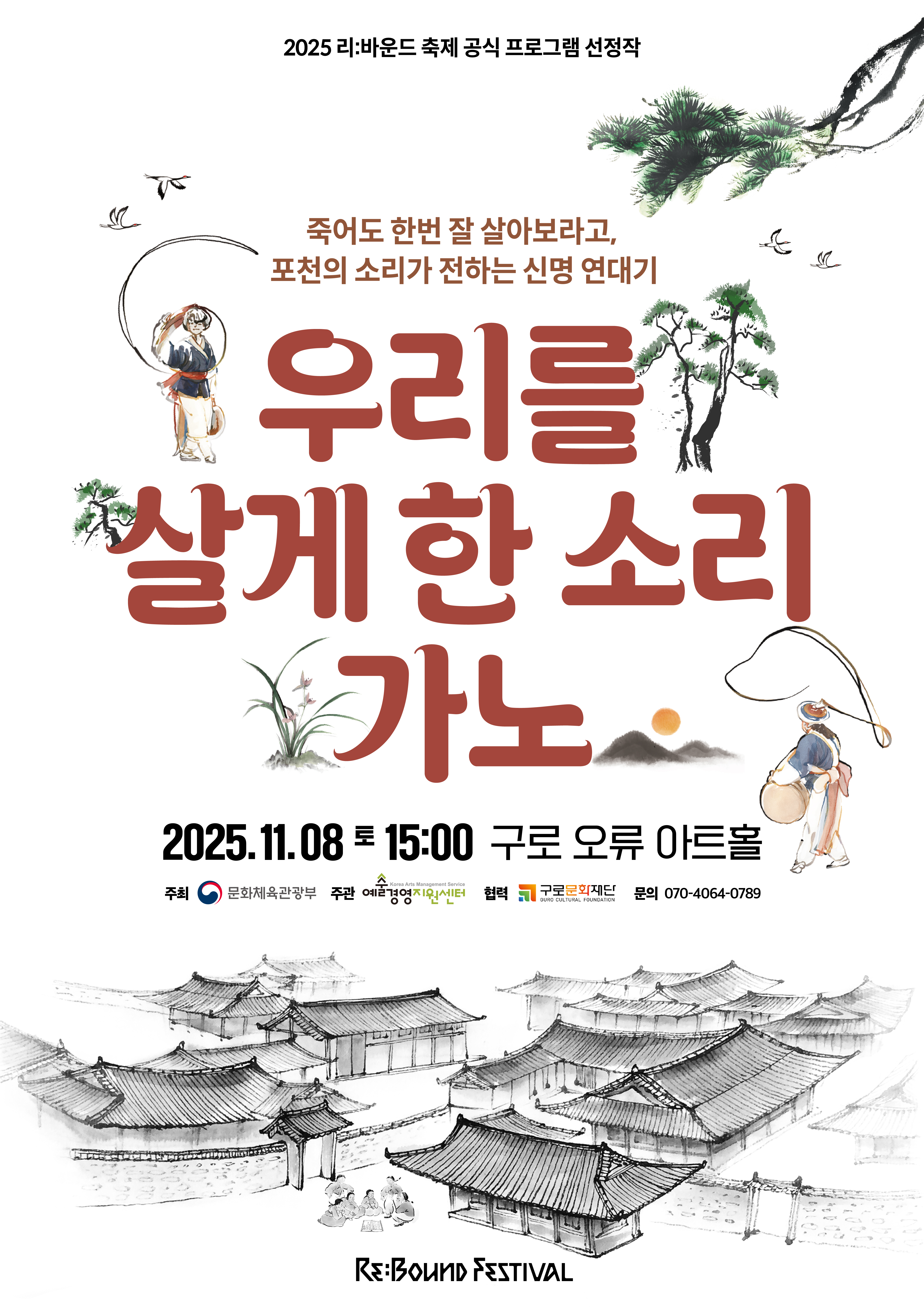 A madanggeuk (traditional outdoor theater) based on the true story of Song Gyeong-nam, who sustained hope through traditional culture during the Korean War. From the Korean War to the 1988 Olympics, it traces local history and the 300-year journey of Kano Nongak (farmers’ music), bringing forward the power of tradition and community.