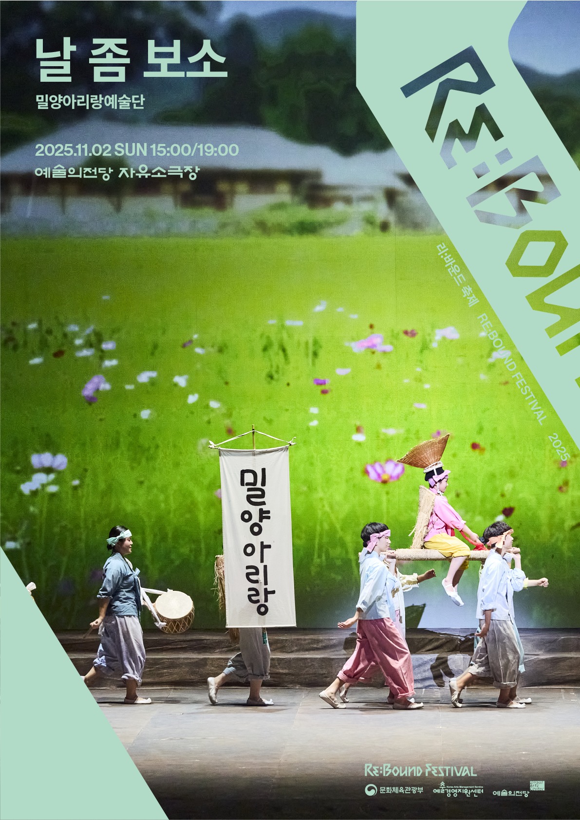 A multidisciplinary work blending the Miryang Arirang (a regional intangible heritage) with traditional games, performed by the youth members of the Arirang Young Talent Troupe. It bridges generations with a vibrant, cross-genre spectacle.